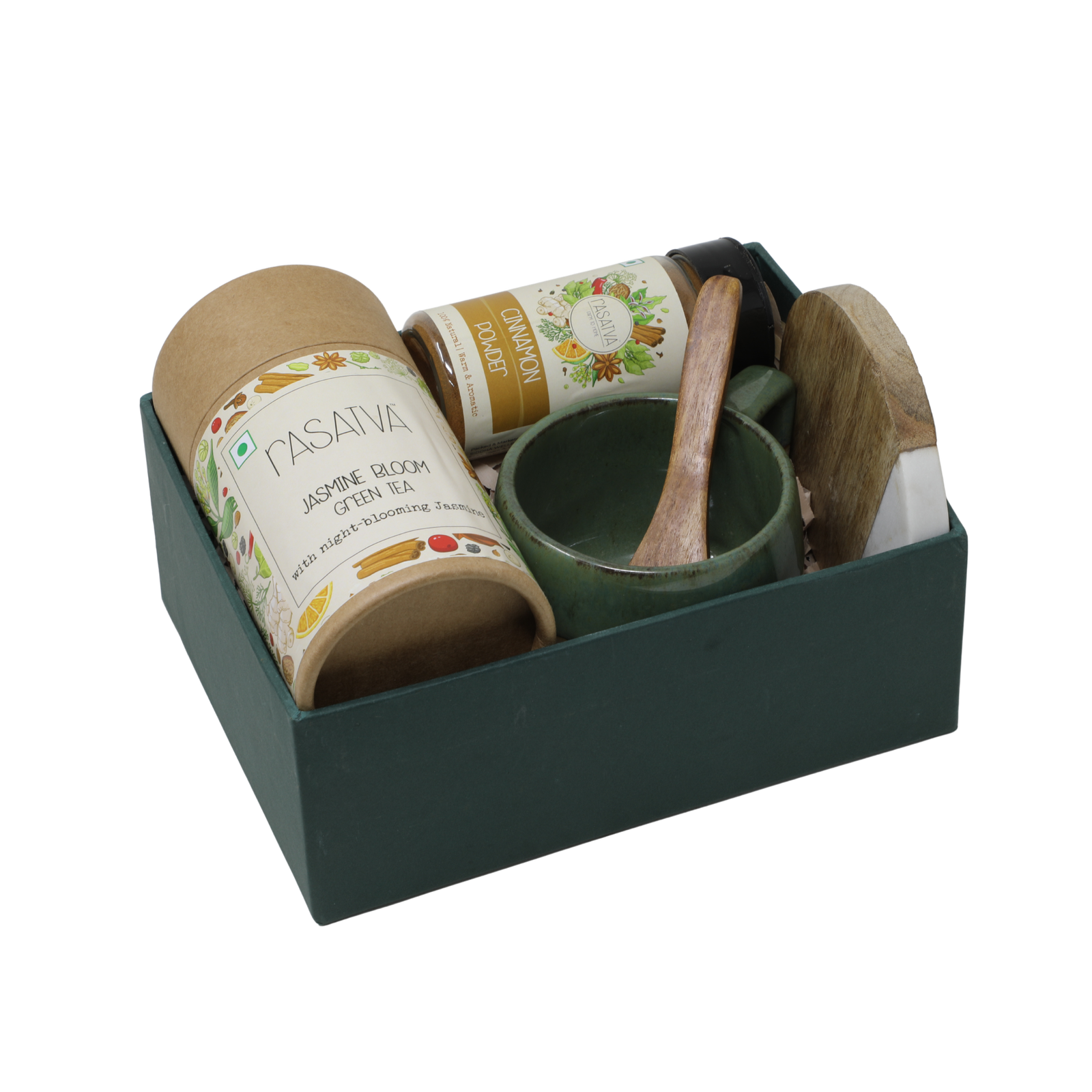 The serenity of sipping green tea, where calm meets flavour in every cup- packaged in a stunning custom-made box.